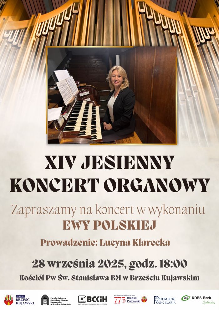 W tym roku na zabytkowych, brzeskich organach zagra Pani Ewa Polska. Wśród zaprezentowanych utworów publiczność usłyszy utwory m.in. Bacha, Schumanna czy Langa. Koncert poprowadzi Pani Lucyna Klarecka.